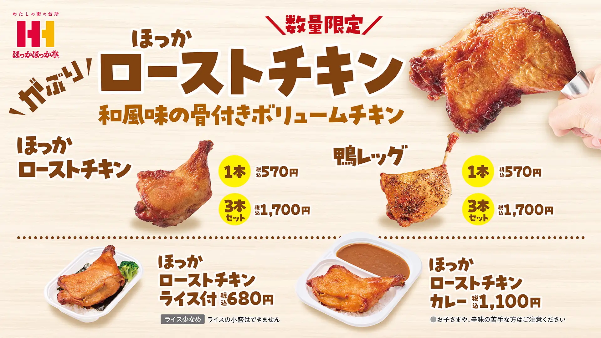 ・ほっかローストチキン(1本 税込570円、3本セット 税込1,700円)